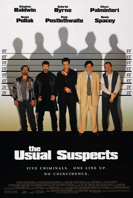 美国加州的圣佩雷罗港一艘货轮爆炸,死亡27人,9000万美元失踪。事故发生以后,联邦调查局探员白基奇在医院等待昏迷不醒的幸存者;海关特派员大卫(查兹•帕明特里 饰)则对另外一名拿到特赦令的幸存者金特(凯文•史派西 饰)进行了审问。 金特供认,在事故中丧生的基顿(加布里埃尔•伯恩 饰)、法特(本尼西奥•德托罗 饰)、麦曼诺(斯蒂芬•鲍尔文 饰)和杜学尼(凯文•波拉克 饰),以及他本人,六个月前被警察局作为卡车抢劫案的疑犯带到警局过了一夜,五人因此结成了一个犯罪团伙,狼狈为奸,狠捞了好几笔。好景不长,某天,律师小林(皮特•波斯尔思韦特 饰)找到他们,让他们替神秘头目凯撒•苏尔烧掉货轮上的毒品。法特第一个退出,随即遭到杀害,剩下四人不得不接受了这个任务。在货轮上,麦曼诺、法特、基顿都没有找到毒品,也因此相继被凯撒杀害,船也被炸毁,金特因为留在岸上接应而侥幸生还。 另一边,在医院抢救的幸存者,拼出了凯撒的头像,结果让所有人大吃一惊…收起