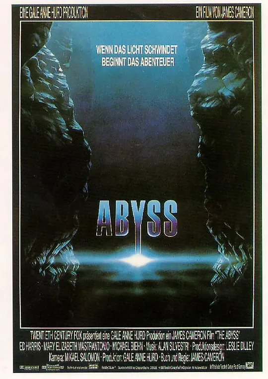 美国核潜艇蒙坦娜号在深海追踪一个不明物体的时候不幸失踪,高压潜水钻台深海之心号工头巴德(艾德·哈里斯 Ed Harris 饰)接到命令负责配合科菲上尉(迈克尔·比恩 Michael Biehn 饰)前去营救。令人意想不想不到的是一同前往的还有跟巴德一直在闹别扭的妻子—— 石油公司工程师琳西(玛丽·伊丽莎白·马斯特兰托尼奥 Mary Elizabeth Mastrantonio)。三人为主的救援队潜到潜艇失踪的海底深渊边缘,却发现潜艇上无人幸存,令人恐慌的是深渊里还存在着一种未知的怪物。经过一系列的危机之后,科菲上尉不听劝阻认定这是苏联的阴谋,决定把从潜艇上拆下来的核弹发射给不明的敌人,于是巴德和琳西联手开始了殊死搏斗。千钧一发之际巴德不顾危险救下了琳西,并且潜下深渊去拆掉核弹头上的引信,完成任务之后巴德的氧气已经消耗殆尽,而就在此刻深海的怪物再次出现收起