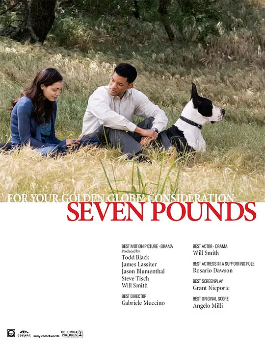 “上帝用7天创造世界,我用7秒钟,就毁灭了自己。” 本·汤姆森(威尔·史密斯饰)向急救中心报告自己自杀的情况。是什么让他选择了自杀来结束自己的生命? 追溯往日,本作为调查员,负责调查部分公民对国家经费的拖欠与申请问题。表面上刻薄的他其实内心充满温情。但没有人能够触及他的内心,本心中到底牵挂着什么? 某一天,本开始调查心脏病移植手术等待者艾米莉·波莎(罗萨里奥·道森饰)。在调查过程中,他的心中起了波澜。于是,一个计划在本的心中盘算。本到底隐瞒了什么? 而这些,又与本的自杀有什么样的关系呢? 一份重达七磅的救赎,一段不堪回首的记忆,本·汤姆森与观众一同探寻生命的意义收起
